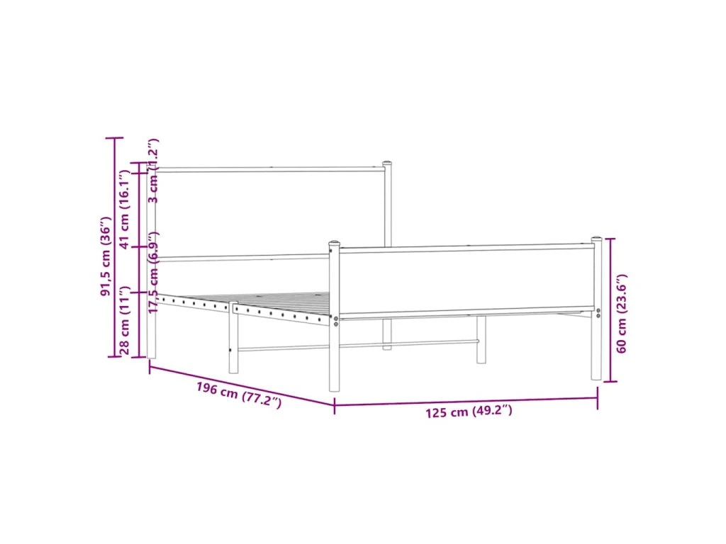 Kovový rám postele bez matrace hnědý dub 120 x 190 cm 4007955