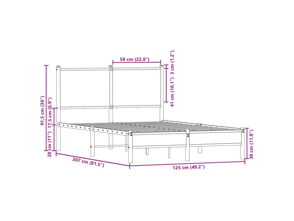 Kovový rám postele bez matrace hnědý dub 120 x 200 cm 4007920