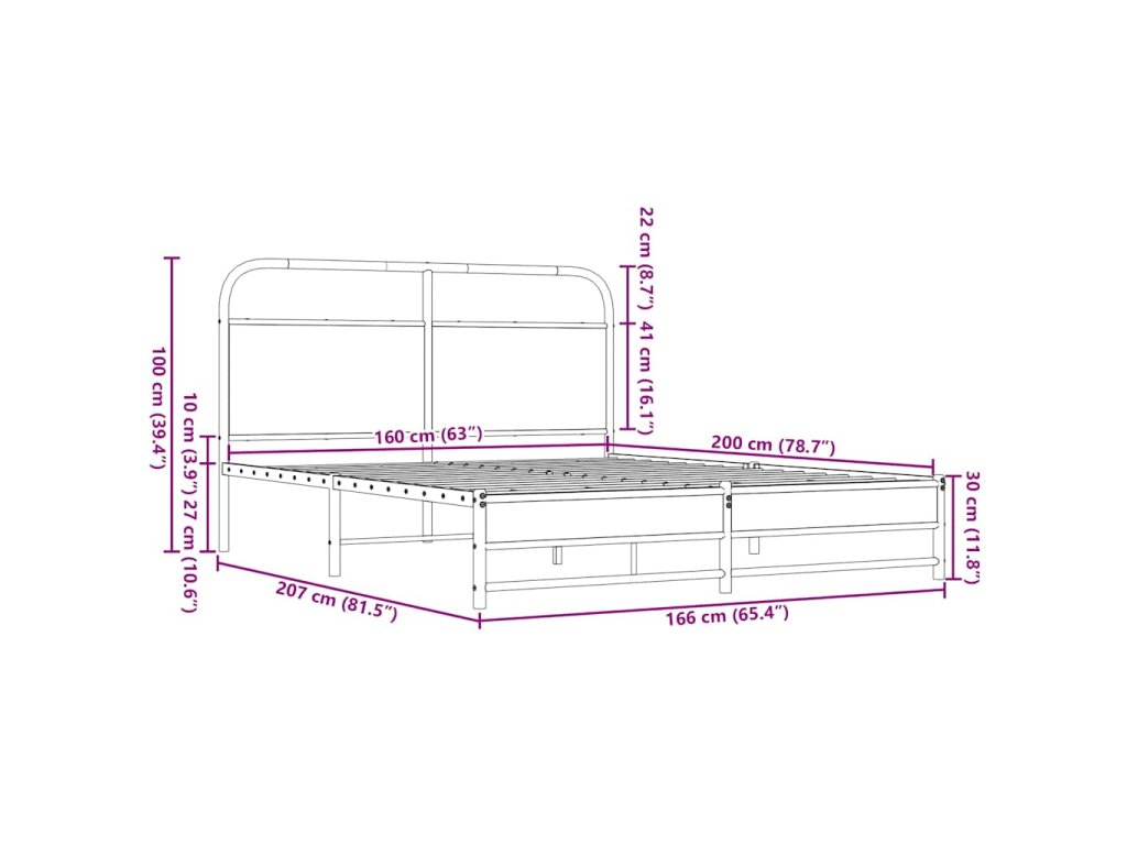 Kovový rám postele bez matrace hnědý dub 160 x 200 cm 3318703