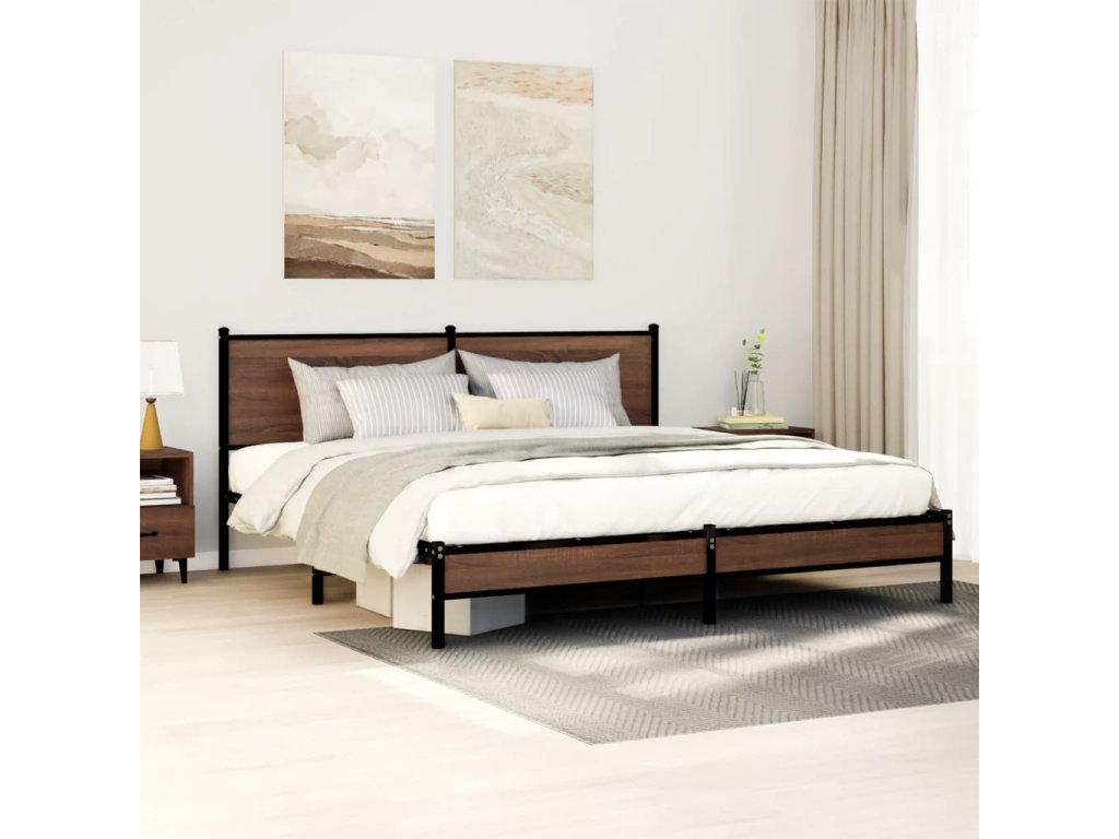 Kovový rám postele bez matrace hnědý dub 160 x 200 cm 4007925