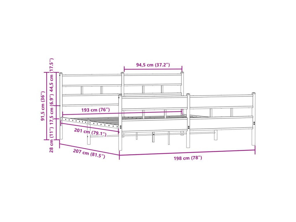 Kovový rám postele bez matrace hnědý dub 193 x 203 cm 3308480
