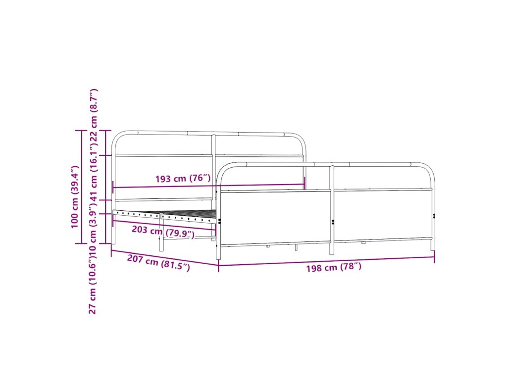 Kovový rám postele bez matrace hnědý dub 193 x 203 cm 3318667