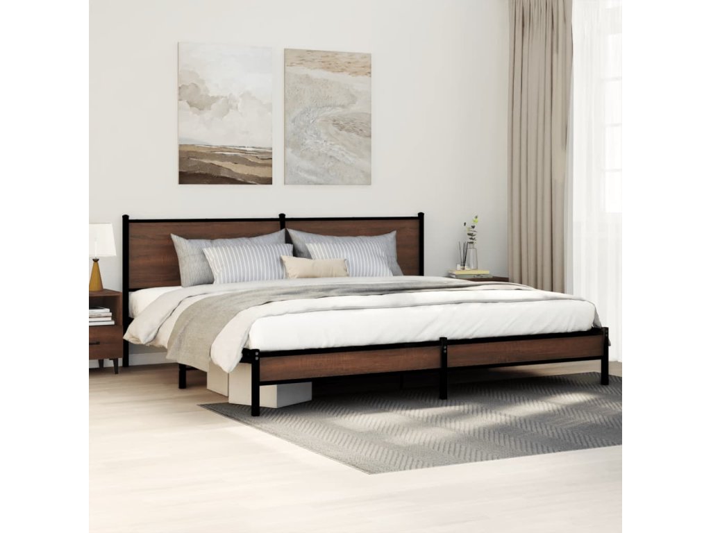 Kovový rám postele bez matrace hnědý dub 200 x 200 cm 3301408