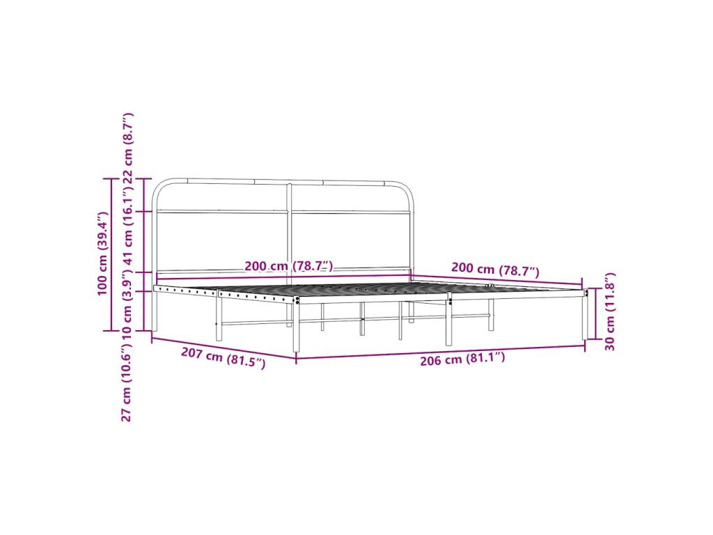 Kovový rám postele bez matrace hnědý dub 200 x 200 cm 3318659