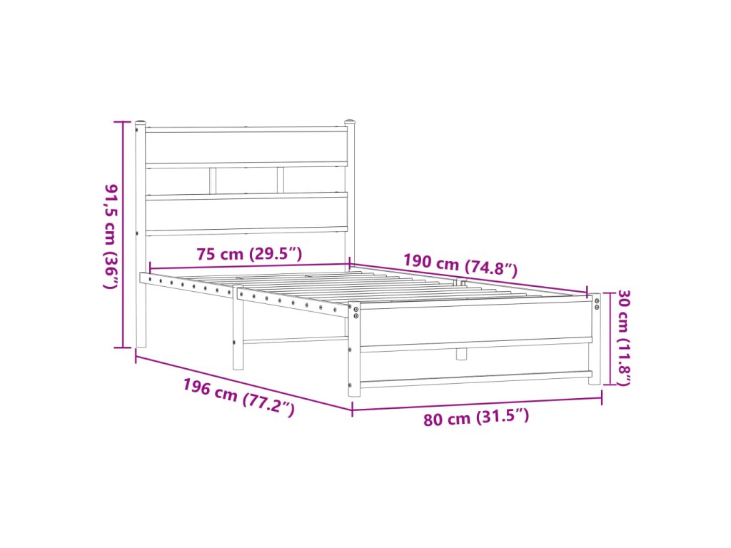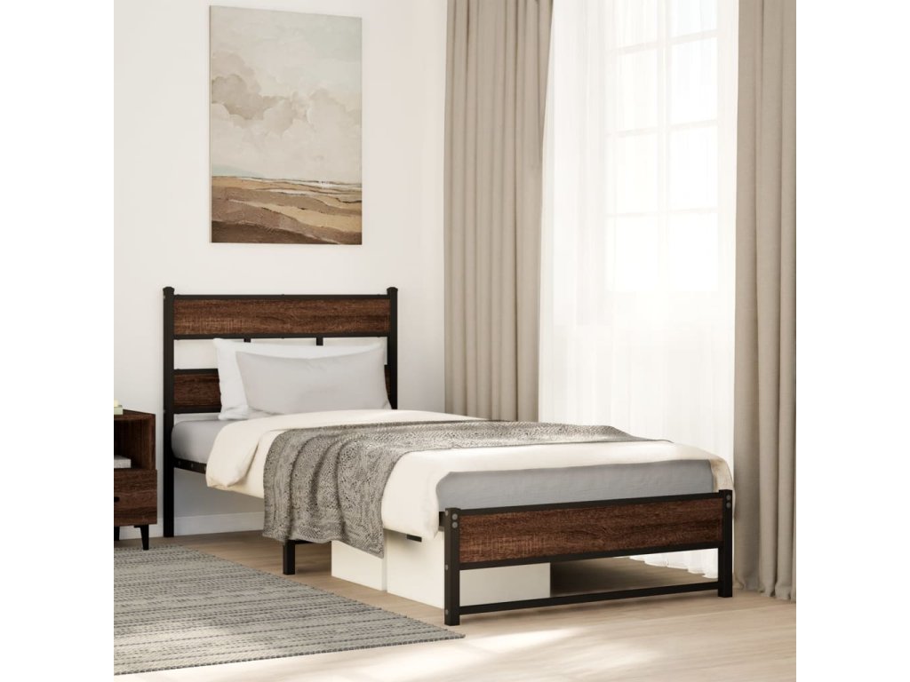 Kovový rám postele bez matrace hnědý dub 75 x 190 cm 4017316