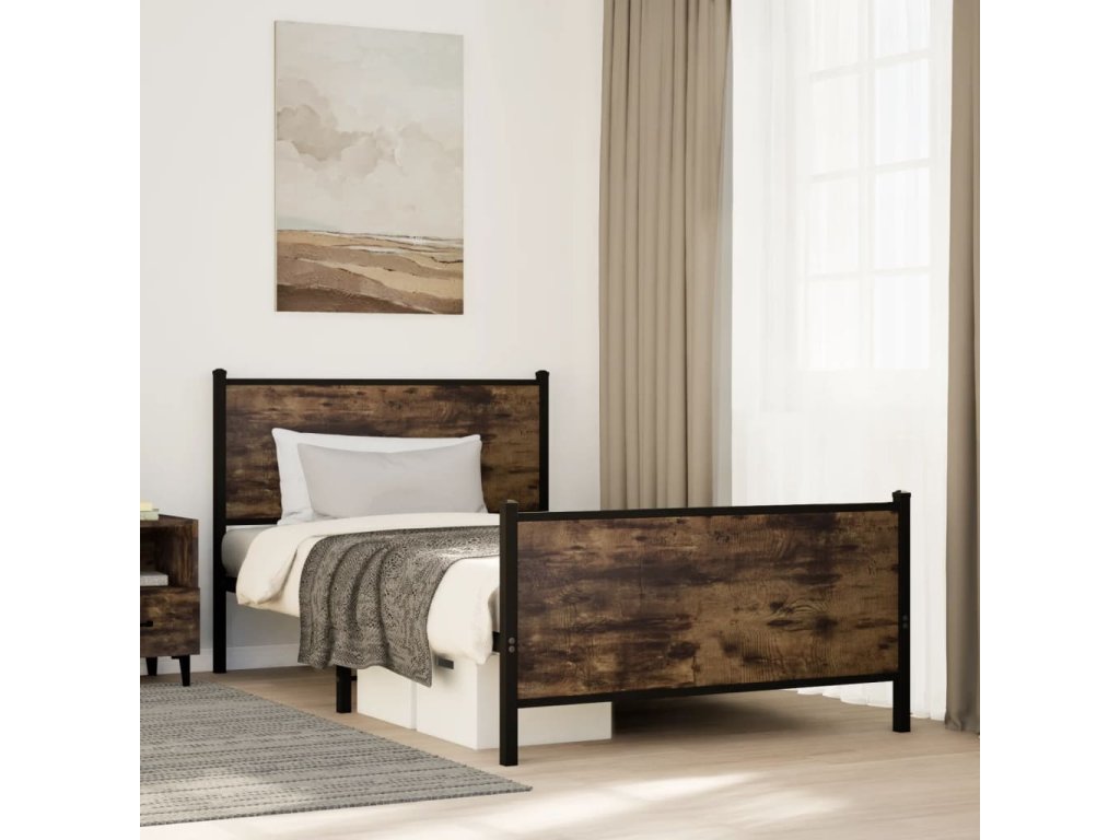 Kovový rám postele bez matrace kouřový dub 100 x 190 cm 4007679