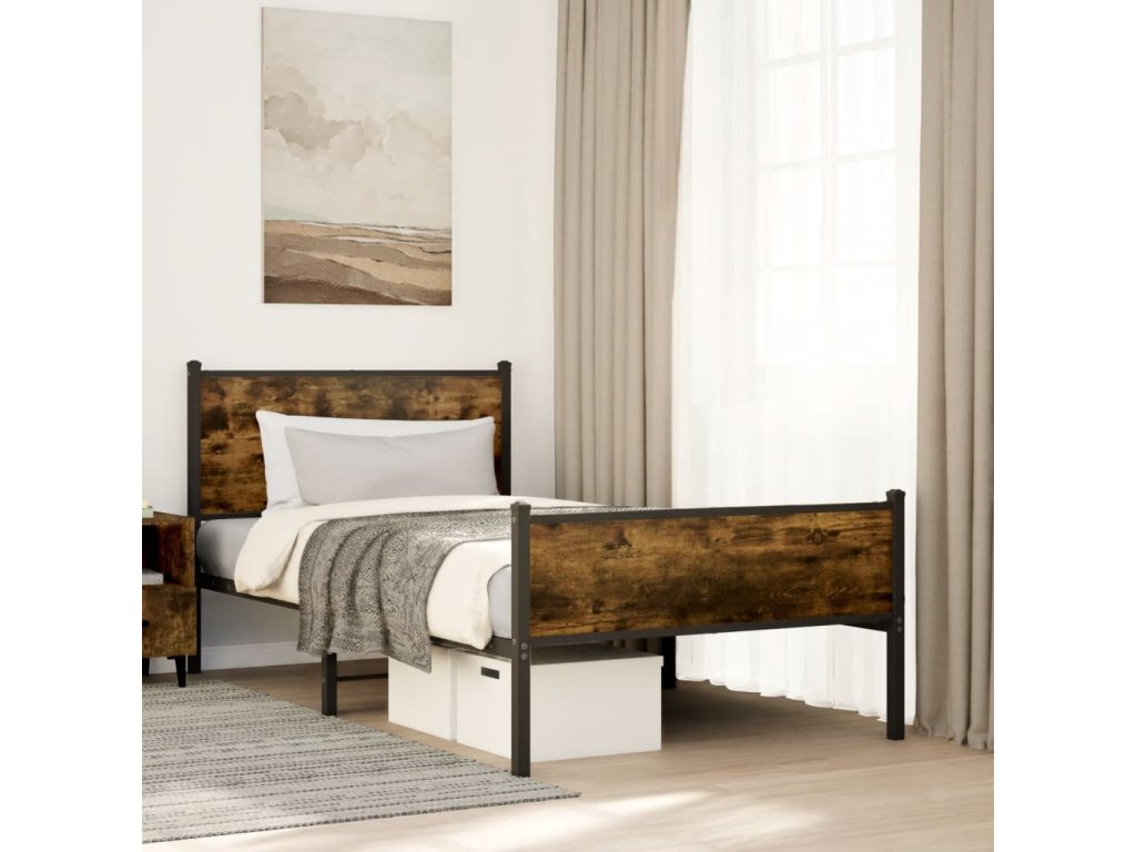 Kovový rám postele bez matrace kouřový dub 100 x 190 cm 4007844