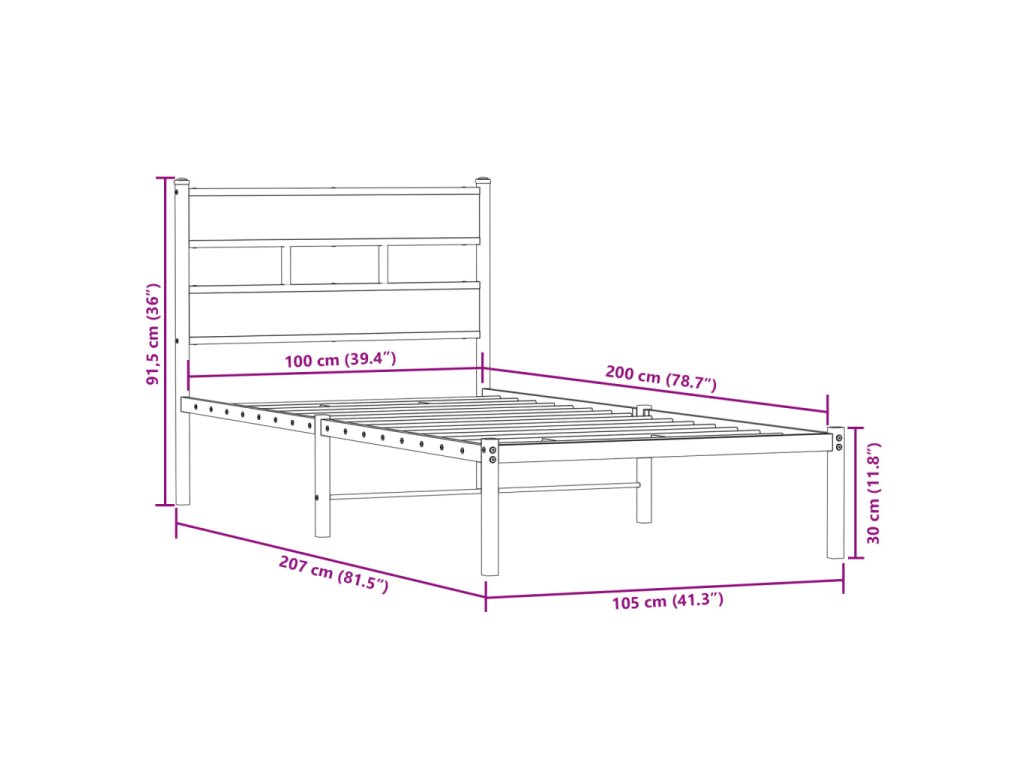 Kovový rám postele bez matrace kouřový dub 100 x 200 cm 4017048
