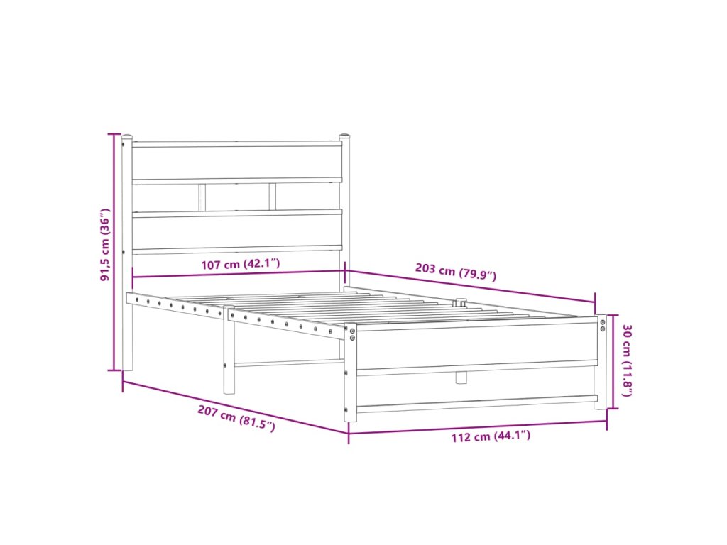 Kovový rám postele bez matrace kouřový dub 107 x 203 cm 4017214