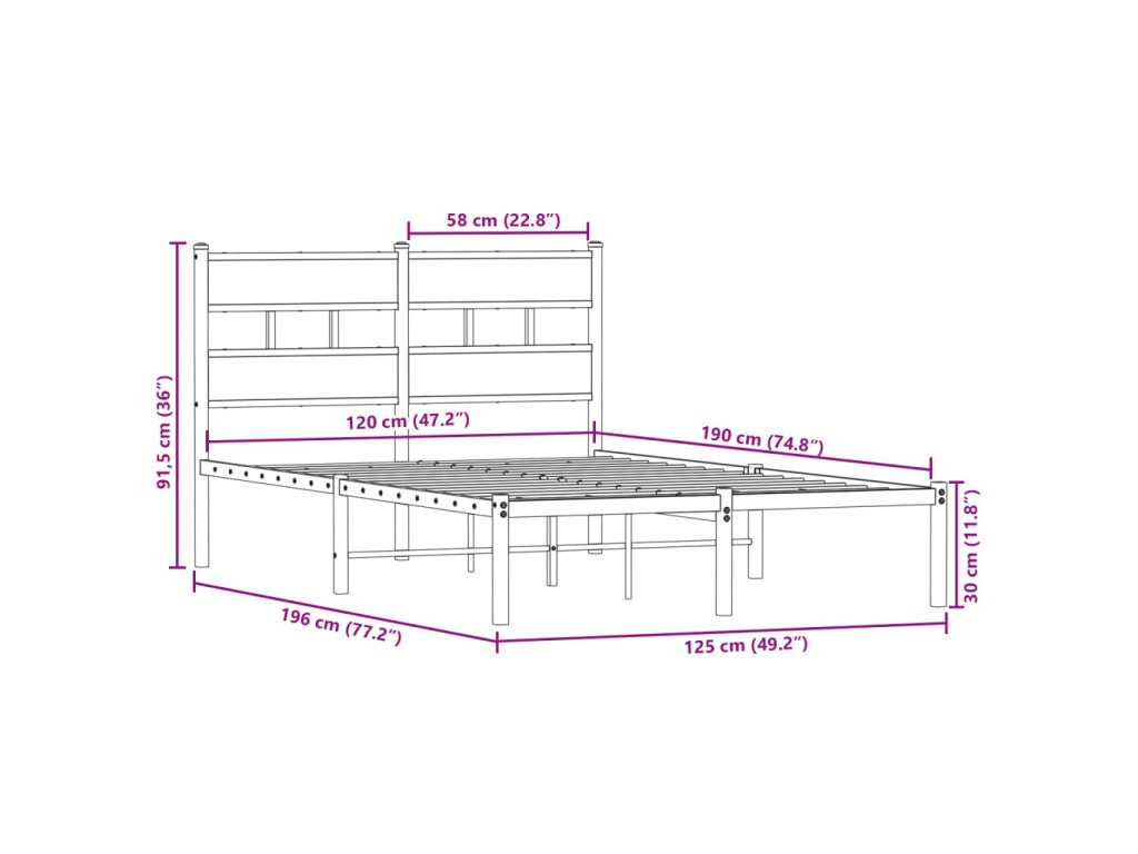 Kovový rám postele bez matrace kouřový dub 120 x 190 cm 4017050
