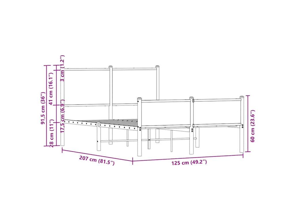 Kovový rám postele bez matrace kouřový dub 120 x 200 cm 4007848