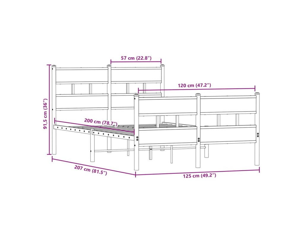Kovový rám postele bez matrace kouřový dub 120 x 200 cm 4017069