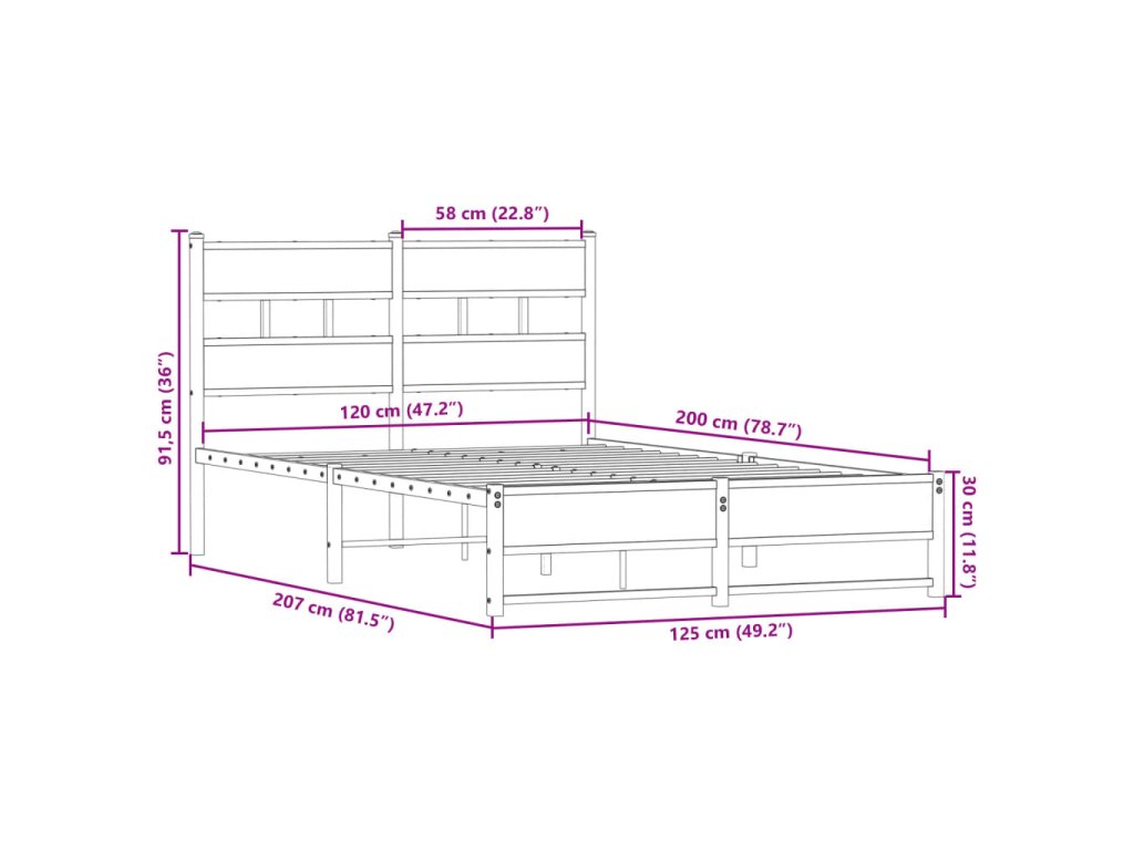 Kovový rám postele bez matrace kouřový dub 120 x 200 cm 4017216