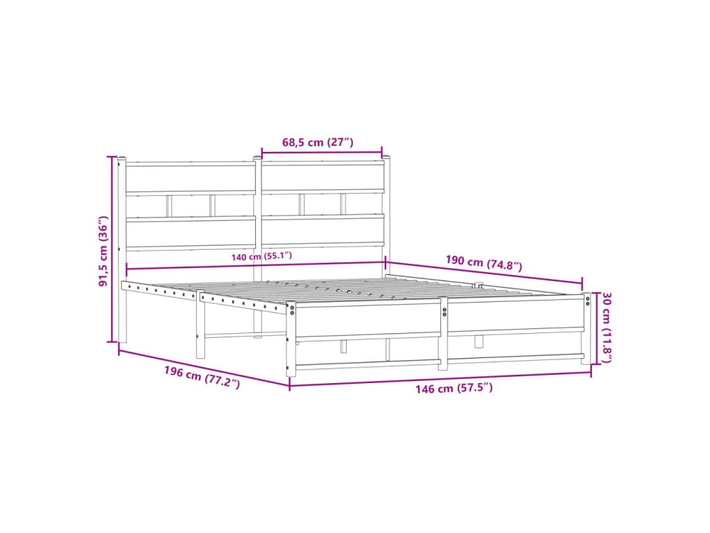 Kovový rám postele bez matrace kouřový dub 140 x 190 cm 4017218