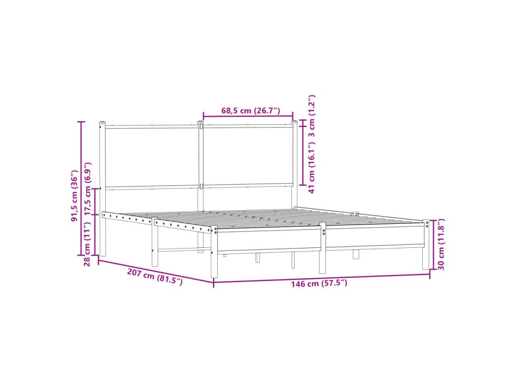 Kovový rám postele bez matrace kouřový dub 140 x 200 cm 4007815