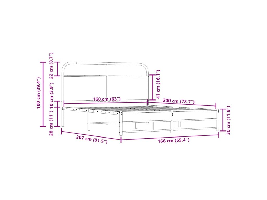 Kovový rám postele bez matrace kouřový dub 160 x 200 cm 3318673