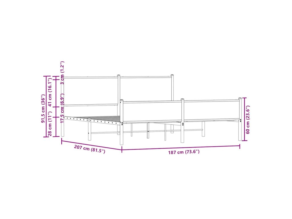 Kovový rám postele bez matrace kouřový dub 180 x 200 cm 3301387