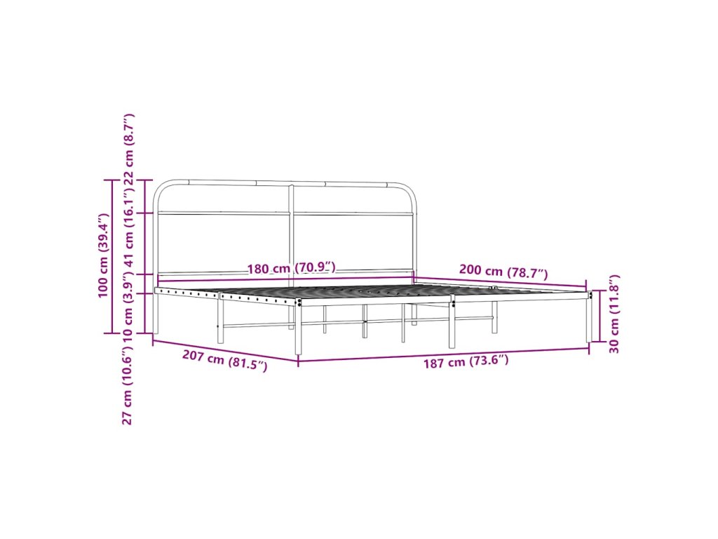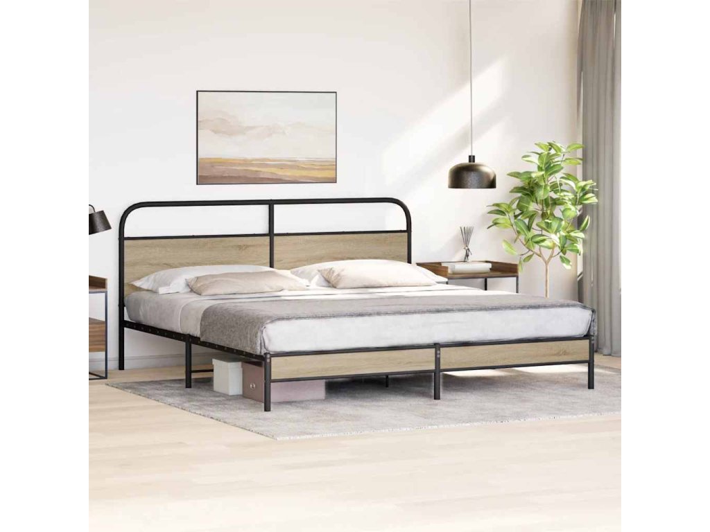 Kovový rám postele bez matrace kouřový dub 180 x 200 cm 3318669