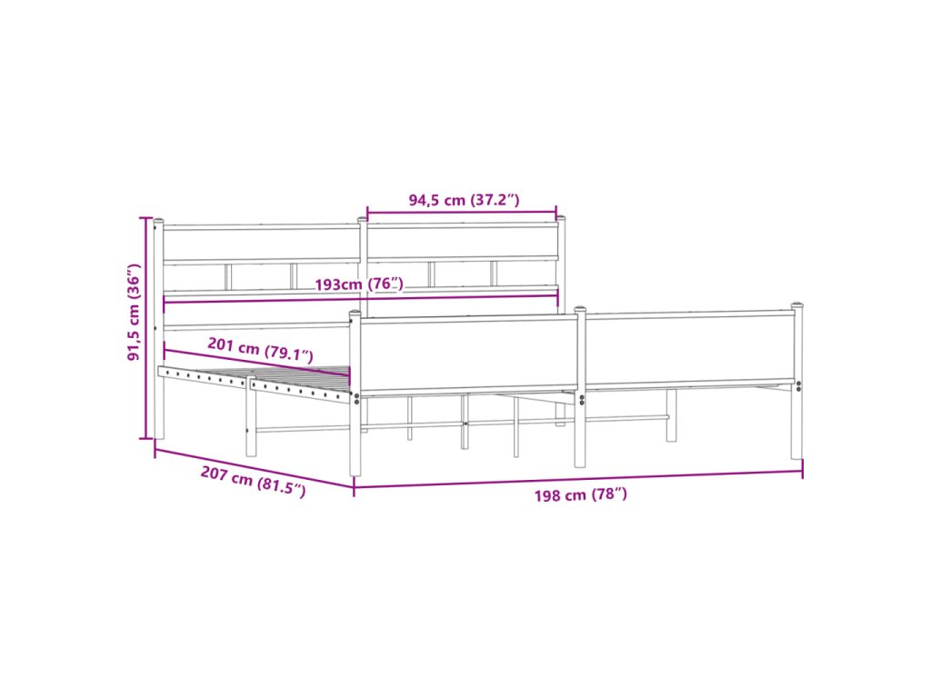 Kovový rám postele bez matrace kouřový dub 193 x 203 cm 3308493