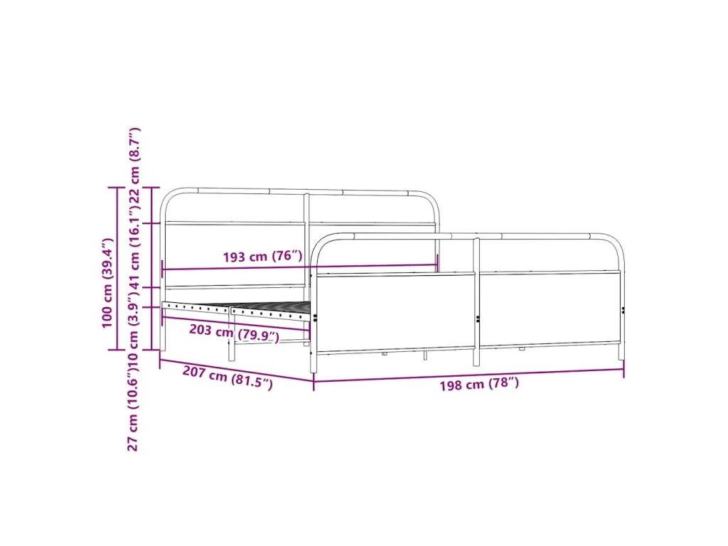 Kovový rám postele bez matrace kouřový dub 193 x 203 cm 3318641