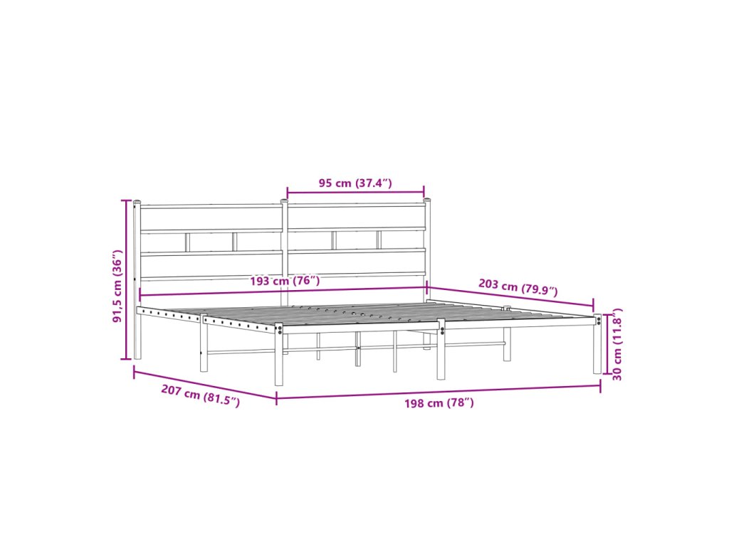 - Vhodné rozměry matrace: 193 x 203 cm (Š x D) (matrace není součástí balení)