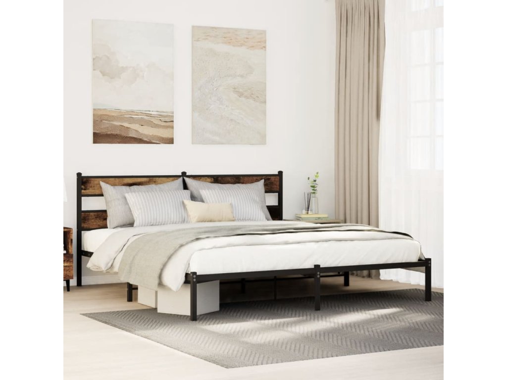 Kovový rám postele bez matrace kouřový dub 193 x 203 cm 4017059
