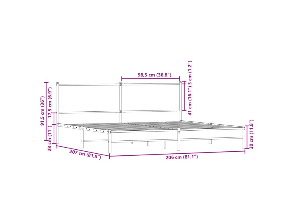 Kovový rám postele bez matrace kouřový dub 200 x 200 cm 3301380