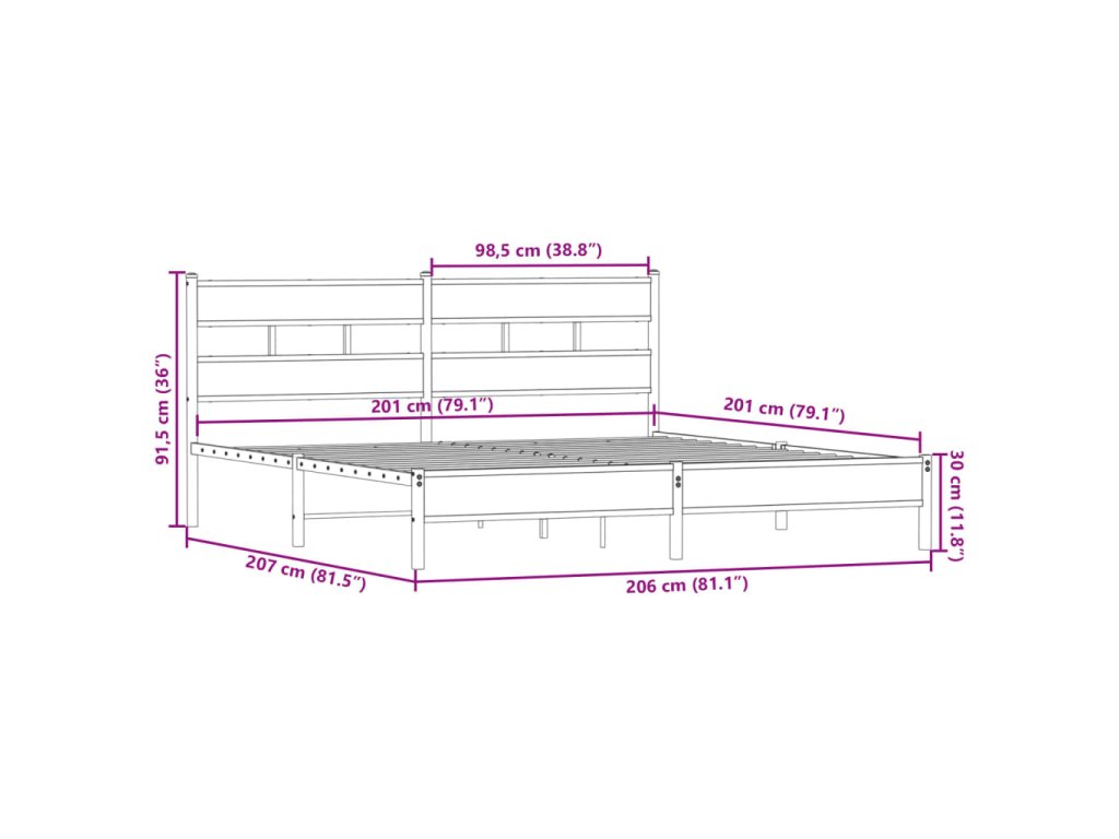 Kovový rám postele bez matrace kouřový dub 200 x 200 cm 3308485