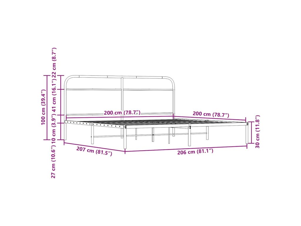 Kovový rám postele bez matrace kouřový dub 200 x 200 cm 3318633