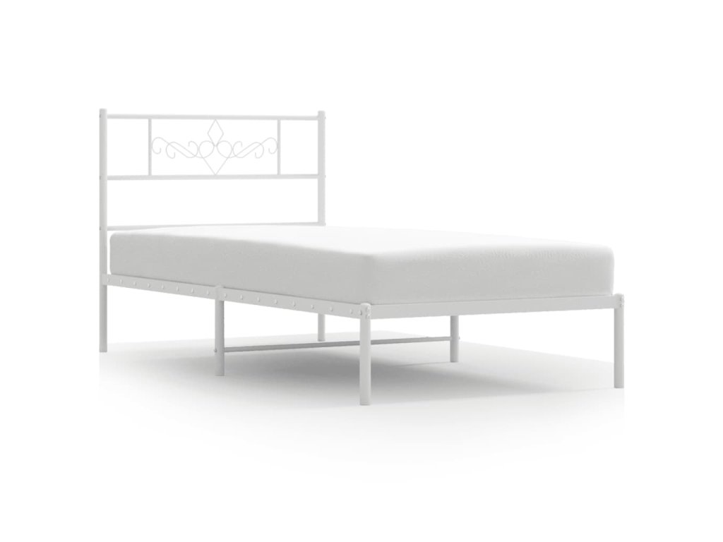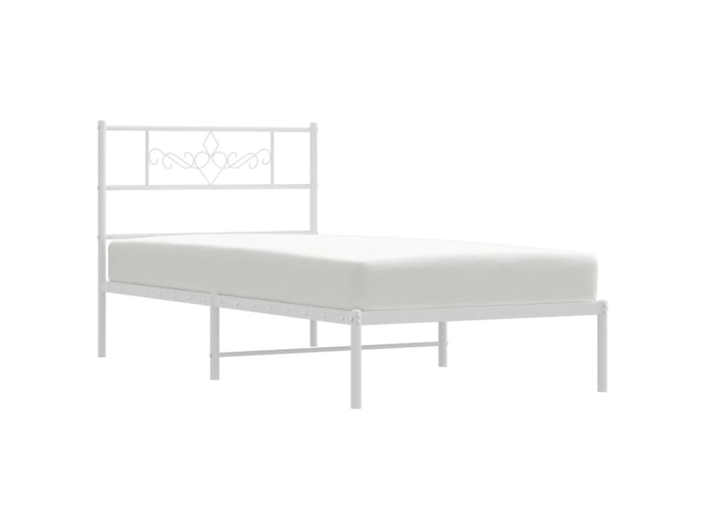 Kovový rám postele bez matrace s čelem bílý 75 x 190 cm 355306