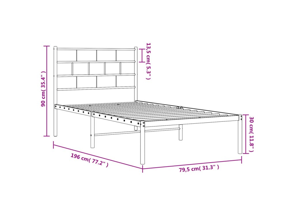 Kovový rám postele bez matrace s čelem bílý 75 x 190 cm 355698