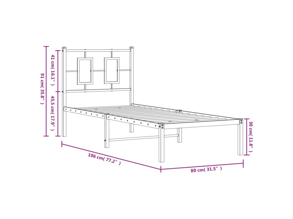 Kovový rám postele bez matrace s čelem bílý 75 x 190 cm 374280