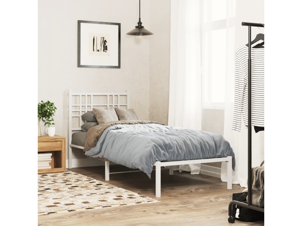 Kovový rám postele bez matrace s čelem bílý 75 x 190 cm 376363
