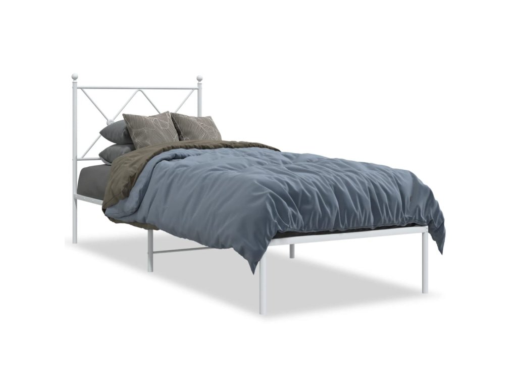 Kovový rám postele bez matrace s čelem bílý 75 x 190 cm 376541