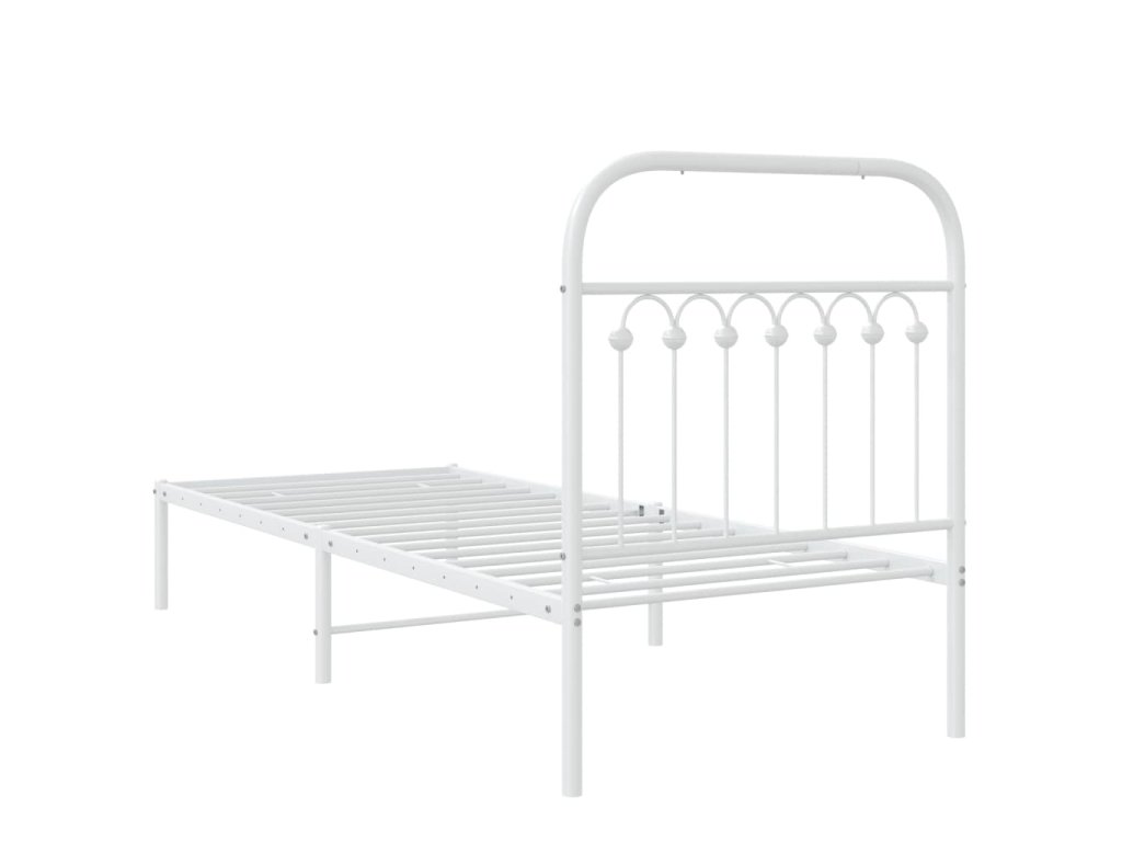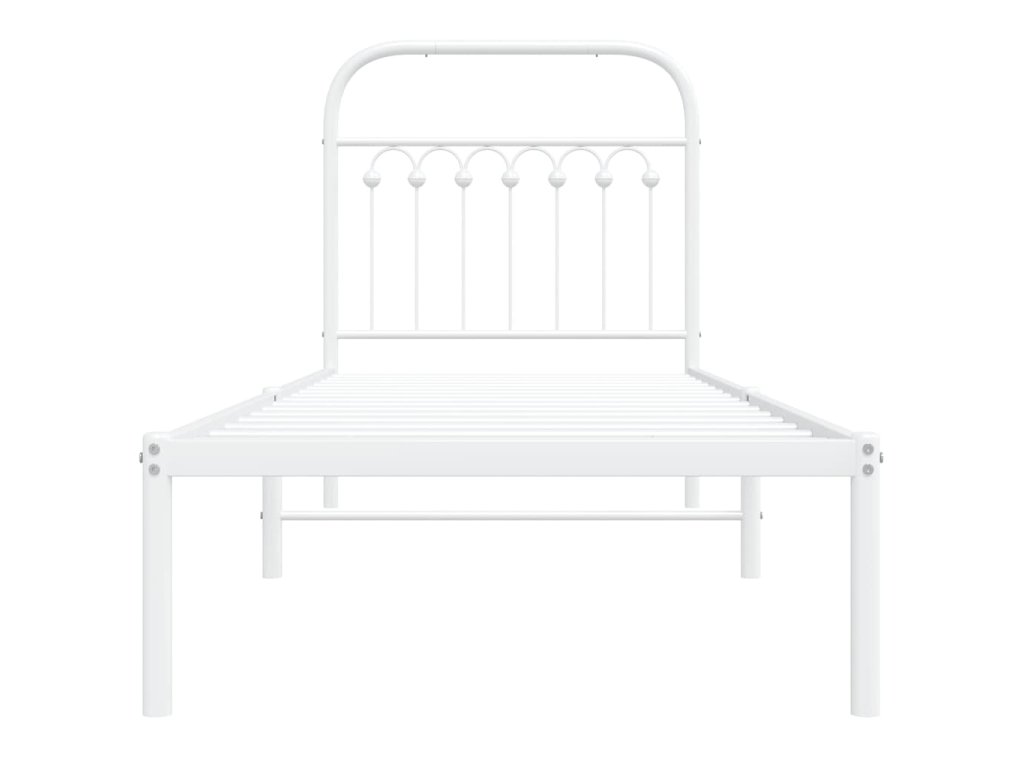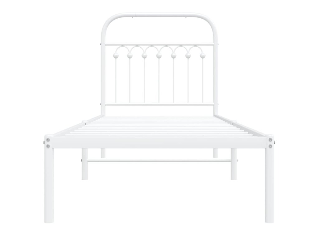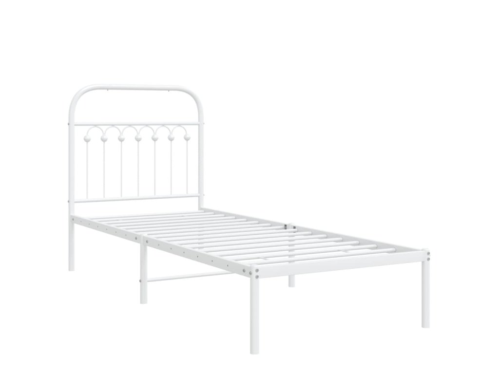 Kovový rám postele bez matrace s čelem bílý 75 x 190 cm 376639