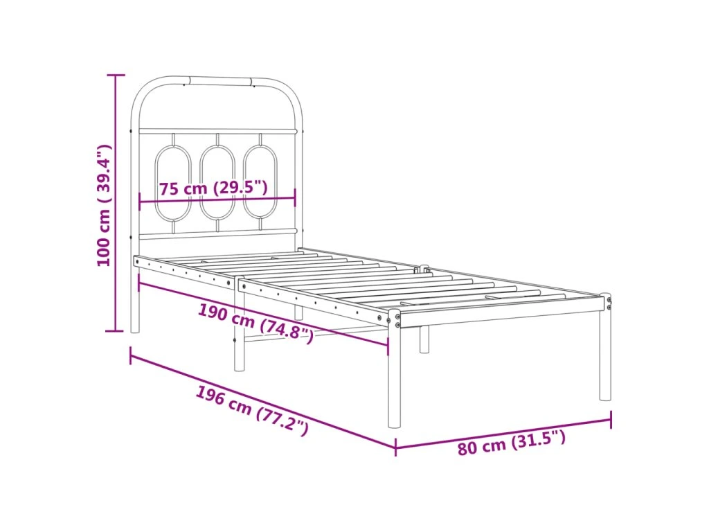 Kovový rám postele bez matrace s čelem bílý 75 x 190 cm 377156