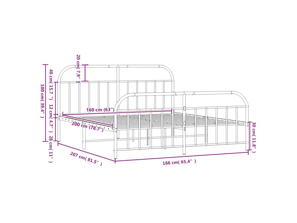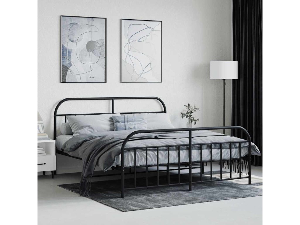 Kovový rám postele bez matrace s nožním čelem černý 160x200 cm 353656
