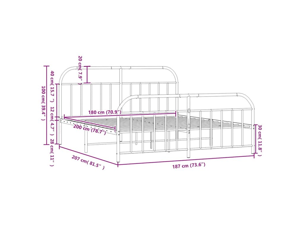 Kovový rám postele bez matrace s nožním čelem černý 180x200 cm 353657