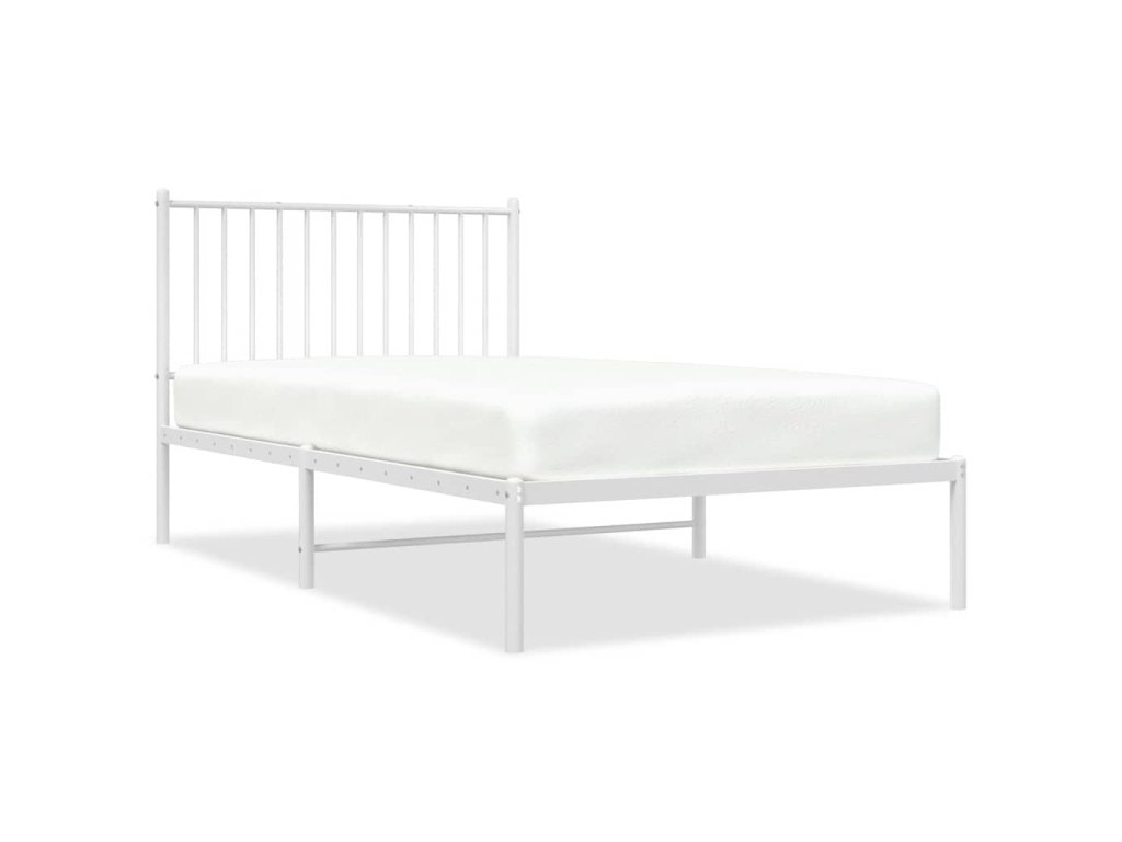 Kovový rám postele s čelem bílý 100 x 190 cm 350925