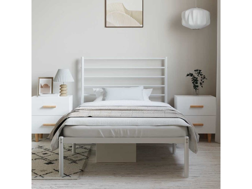 Kovový rám postele s čelem bílý 100 x 190 cm 352362