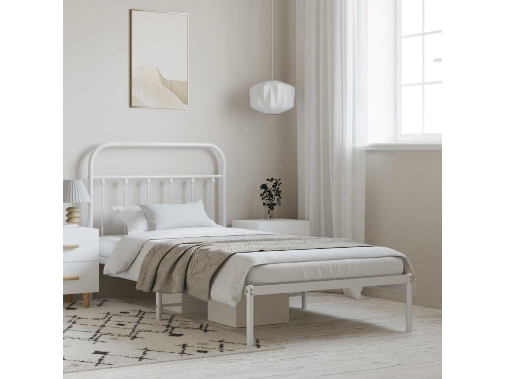 Kovový rám postele s čelem bílý 100 x 190 cm 352621