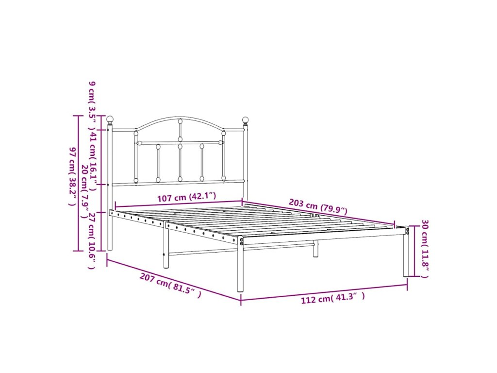 Kovový rám postele s čelem bílý 107 x 203 cm 353484