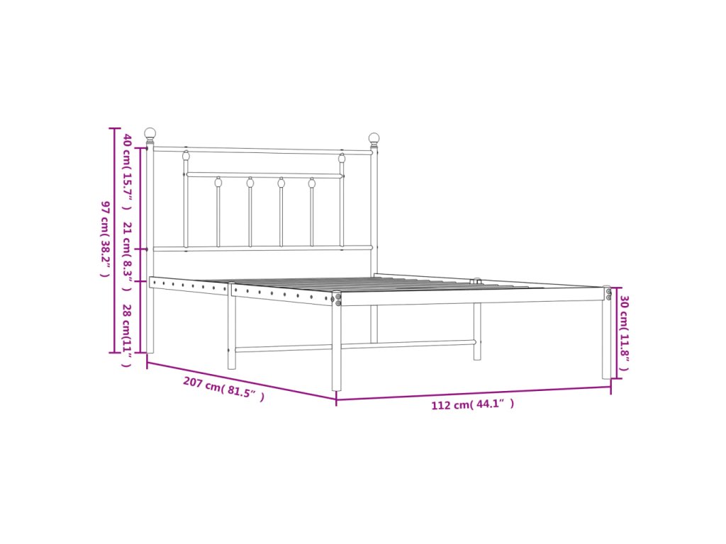 Kovový rám postele s čelem bílý 107 x 203 cm 353582