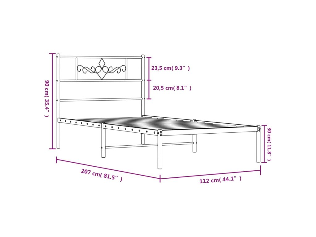 Kovový rám postele s čelem bílý 107 x 203 cm 355312
