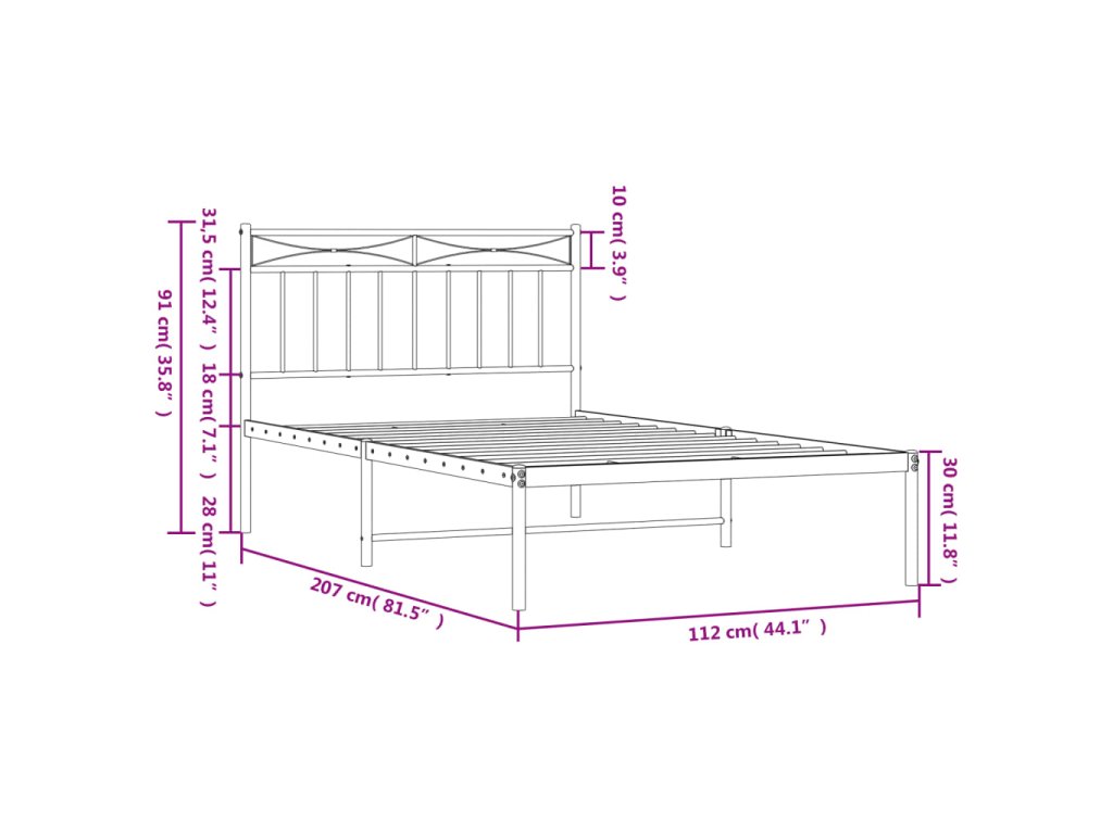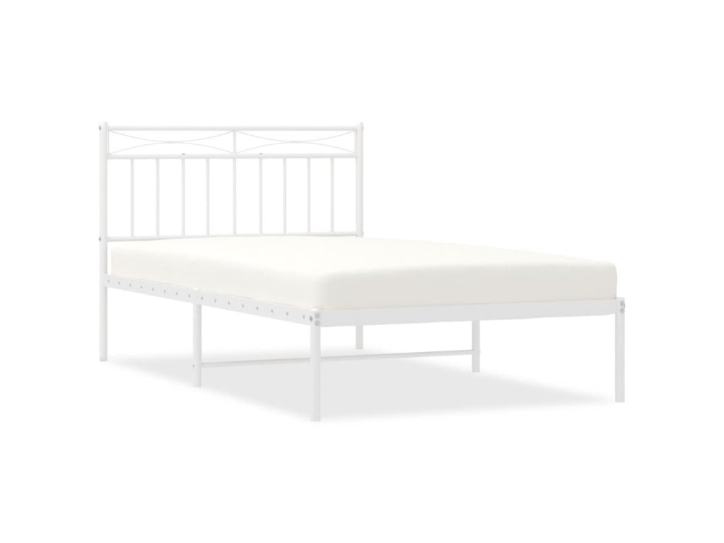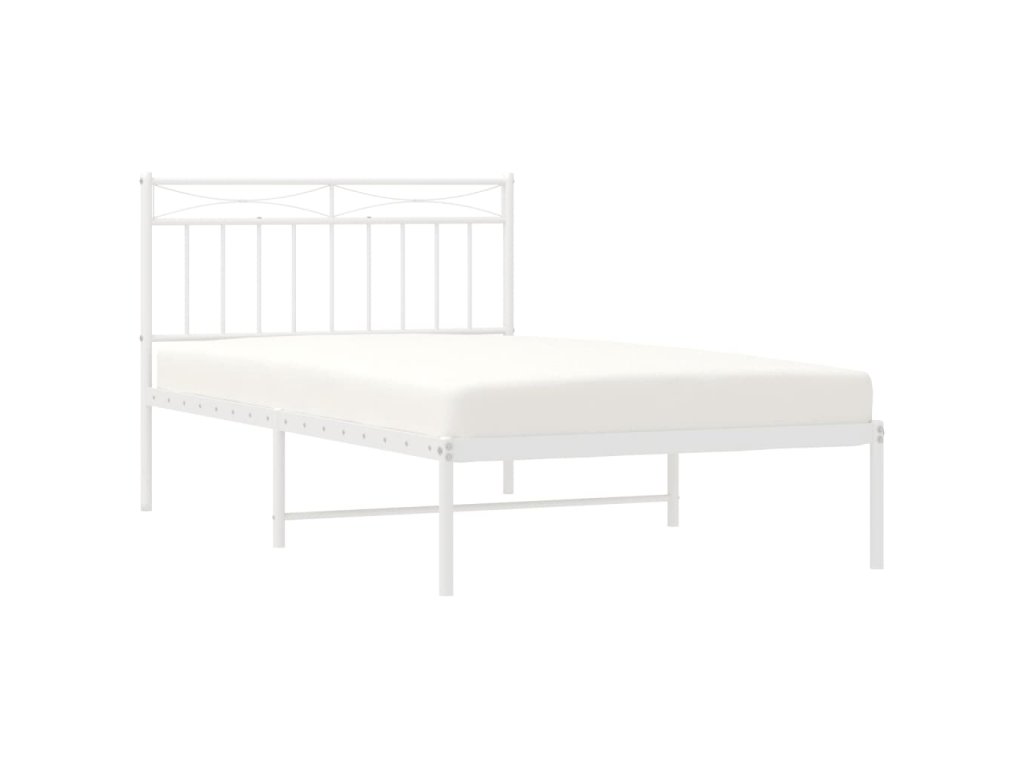 Kovový rám postele s čelem bílý 107 x 203 cm 373736