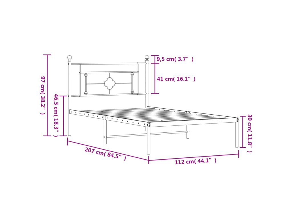 - Vhodné rozměry matrace: 107 x 203 cm (Š x D) (matrace není součástí balení)