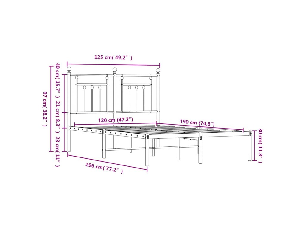 - Vhodné rozměry matrace: 120 x 190 cm (Š x D) (matrace není součástí balení)