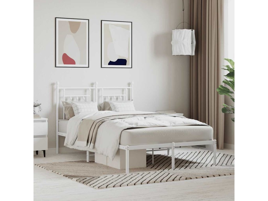 Kovový rám postele s čelem bílý 120 x 190 cm 353583