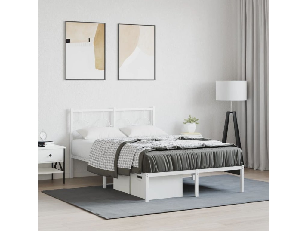 Kovový rám postele s čelem bílý 120 x 190 cm 376272