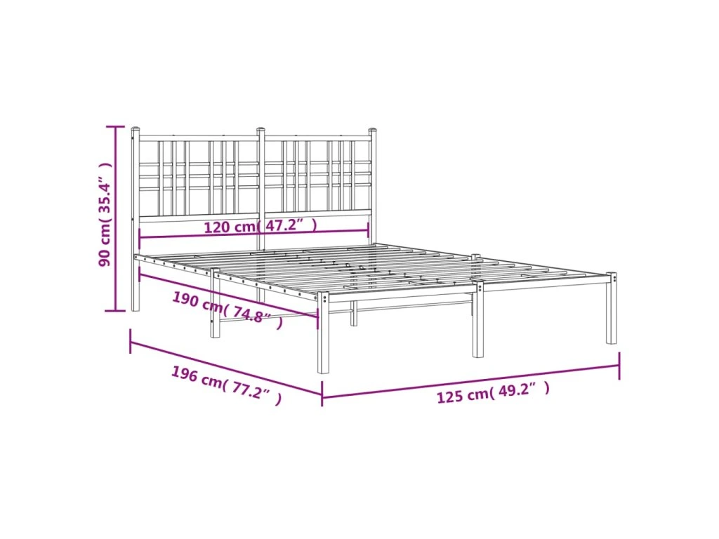 Kovový rám postele s čelem bílý 120 x 190 cm 376370